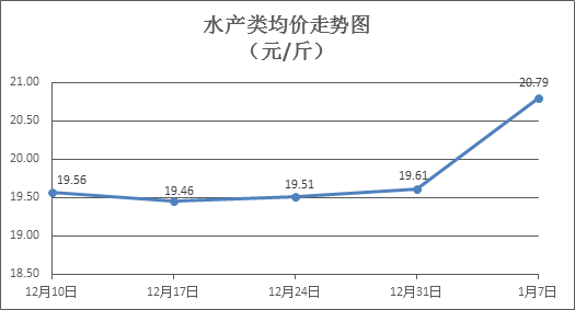 據(jù)本市21家農(nóng)貿(mào)市場監(jiān)測數(shù)據(jù)顯示,上周(1月1日至1月7日,下同)市場上各類“菜籃子”商品供應充足,所監(jiān)測的7大類“菜籃子”商品價格6漲1跌。其中:糧油類商品價格穩(wěn)中略漲,禽蛋類、蔬果類、水產(chǎn)類商品價格總體略漲,肉類商品價格窄幅盤整。由于監(jiān)測點及監(jiān)測品種的變動,本周水產(chǎn)品價格有所上升。近期市場供需基本平衡,預計下周各類商品價格以穩(wěn)為主。