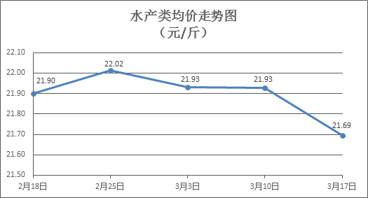 水產類商品價格總體略降。上周所監測的10種水產商品價格波動情況為3漲6跌1平,綜合均價為21.69元/斤,環比下降1.06%。其中:草魚、鯽魚、羅非魚、基圍蝦零售均價分別為每斤11.37元、14.31元、8.95元、34.50元,環比分別下降1.04%、下降0.07%、上漲0.34%、下降1.51%。