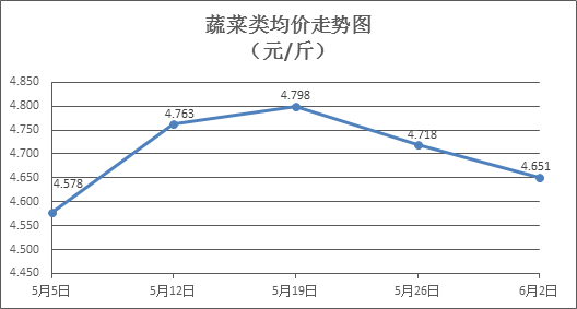 據本市21家農貿市場監測數據顯示,上周(5月27日至6月2日)市場上各類“菜籃子”商品供應充足,所監測的7大類“菜籃子”商品價格3漲3跌1平。其中:與上周比(環比),糧食類商品價格基本平穩,食用油類、肉禽蛋類商品價格總體略漲,蔬果類、水產類商品價格略有下降。近期市場以地產蔬菜供應為主,生產成本降低,整體推動菜價下跌,階段性陰雨會對蔬菜生產和運輸、保鮮造成影響,預計后期蔬菜價格季節性下行空間有限。