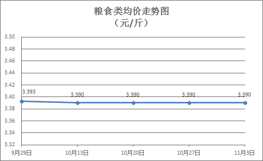 糧食類商品價格穩定。所監測的4種糧食類商品價格均持平,零售均價為每斤3.390元。其中:絲苗米、富強粉零售均價分別為每斤3.57元、3.36元,環比均持平。