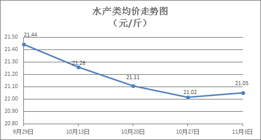 水產類商品價格總體微漲。所監測的9種水產商品價格波動情況為6漲3跌,綜合均價為每斤21.05元,環比上漲0.14%。其中:草魚、鯽魚、羅非魚、海蝦零售均價分別為每斤11.04元、13.87元、9.05元、49.60元,環比分別下降0.04%、上漲0.81%、上漲0.73%、上漲0.47%。