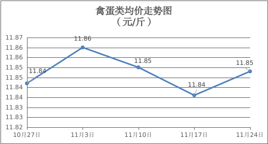 禽蛋類商品價格窄幅盤整。所監(jiān)測的5種禽蛋類商品價格波動情況為2漲2跌1平,綜合零售均價為每斤11.85元,環(huán)比上漲0.10%。其中:白條雞、白條鴨零售均價分別為每斤20.39元、15.34元,環(huán)比分別上漲0.05%、下降0.13%;雞蛋、鴨蛋零售均價分別為每斤6.54元、7.79元,環(huán)比分別下降0.15%、上漲1.04%。