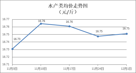 說明:由于省監測系統作了品種調整,本期水產品計算均價的時候用鳙魚來替換海蝦,走勢圖中前幾期數據也作相應修改,以保證數據的連續性。