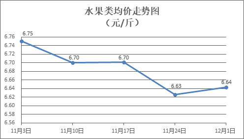 水果類商品價格微幅上漲。所監測的6種水果商品價格波動情況為3漲1跌2平,綜合零售均價為每斤6.64元,環比上漲0.25%。其中橙子、蘋果、葡萄零售均價分別為每斤6.13元、7.43元、13.51元,環比分別下降0.16%、上漲0.13%、上漲0.52%。