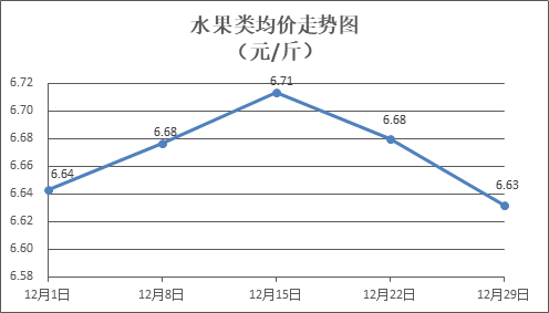 水果類商品價格總體略降。所監測的6種水果商品價格波動情況為1漲4跌1平,綜合零售均價為每斤6.63元,環比下降0.72%。其中橙子、蘋果、葡萄零售均價分別為每斤5.84元、7.36元、13.89元,環比分別下降2.01%、下降0.94%、下降0.50%。