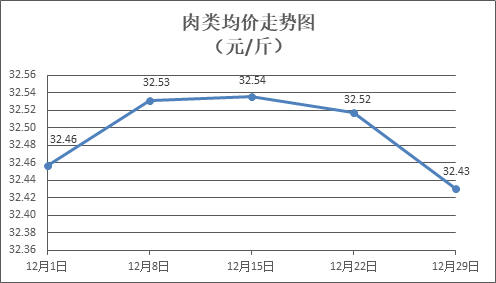 肉類商品價格普遍略降。所監測的8種肉類商品價格波動情況為1漲6跌1平,綜合零售均價為每斤32.43元,環比下降0.27%。其中:排骨、精瘦肉、有皮上肉、牛肉、帶骨羊肉零售均價分別為每斤31.46元、19.95元、16.00元、45.64元、41.85元,環比分別下降0.94%、下降0.25%、下降1.17%、下降0.09%、上漲0.17%。
