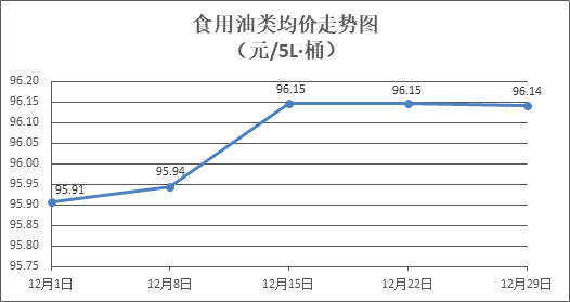 食用油類商品價格穩中微降。所監測的9種食用油(5L裝)商品價格波動情況為1漲3跌5平,綜合零售均價為每桶96.14元,環比下降0.01%。其中:金龍魚花生油、大豆油零售均價為每桶103.14元、62.49元,環比分別下降0.06%、下降0.06%。
