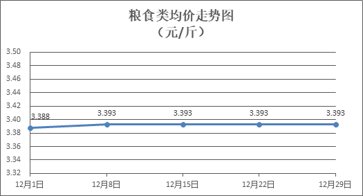 糧食類商品價格保持穩定。所監測的4種糧食類商品價格均持平,零售均價為每斤3.393元。其中:油粘米、富強粉零售均價分別為每斤3.52元、3.36元,環比均持平。