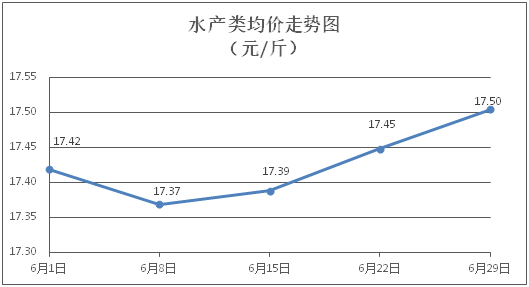 水產類商品價格延續微漲。所監測的9種水產商品價格波動情況為5漲3跌1平,綜合均價為每斤17.50元,環比上漲0.32%。其中:草魚、鯽魚、淡水鱸魚、基圍蝦零售均價分別為每斤11.21元、14.18元、22.55元、30.61元,環比分別上漲0.27%、下降0.49%、上漲0.53%、下降0.29%。