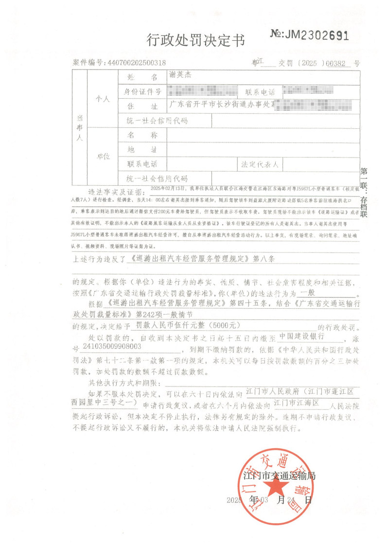 聯系地址:江門市潮連大道18號江門市交通運輸局違章處理窗口,電話:0750-3887771。