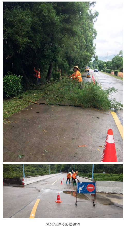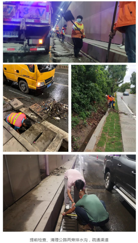 5月11日,全市出動養護車57臺次、機械(設備)31臺班、養護工241人次,處理倒伏路樹103棵,清除路面雜物62處,疏通堵塞泄水孔(橋涵)25處,疏通排水溝25處,處理道路水浸12處、路基損壞0.3公里50立方米、塌方4處23立方米。臨時挖通路沿石或移除沙井蓋進行加強排水8處。