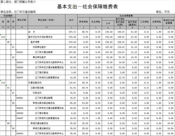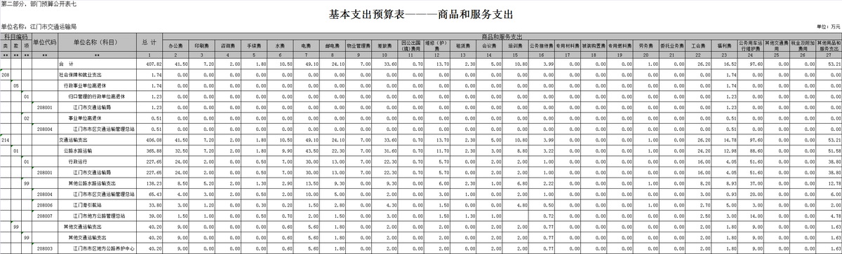 項目支出預算5511.19萬元,主要支出項目有公路水路運輸支出1110.63萬元、公共交通運營補助支出3681.16萬元、其他交通運輸支出89.40萬元、港口建設費330.00萬元、城市基礎設施配套費300.00萬元。與上年比增加主要是增加公交優先發展專項資金3048.00萬元,新能源汽車應用推廣專項資金1183.16萬元,江門市市區城市公共交通專項規劃修編300萬元等項目支出。