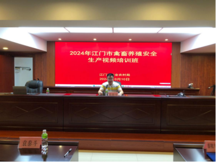 為深入貫徹習(xí)近平總書記關(guān)于安全生產(chǎn)的重要指示批示精神,切實(shí)做好我市畜禽養(yǎng)殖行業(yè)安全生產(chǎn)工作,筑牢安全生產(chǎn)防線,營(yíng)造濃厚的安全生產(chǎn)氛圍,2024年10月10日上午,江門市農(nóng)業(yè)農(nóng)村局組織開展2024年江門市畜禽養(yǎng)殖安全生產(chǎn)視頻培訓(xùn)班。此次視頻培訓(xùn)設(shè)市級(jí)主會(huì)場(chǎng)和各縣分會(huì)場(chǎng)。市農(nóng)業(yè)農(nóng)村局總畜牧獸醫(yī)師袁泰斗,畜牧與飼料科、獸醫(yī)與屠宰管理科、市動(dòng)物衛(wèi)生技術(shù)服務(wù)中心、市動(dòng)物疫病預(yù)防控制中心業(yè)務(wù)工作人員在主會(huì)場(chǎng)參加,各縣(市、區(qū))農(nóng)業(yè)農(nóng)村局負(fù)責(zé)同志、業(yè)務(wù)骨干以及部分畜禽養(yǎng)殖場(chǎng)(戶)負(fù)責(zé)人在分會(huì)場(chǎng)參加。