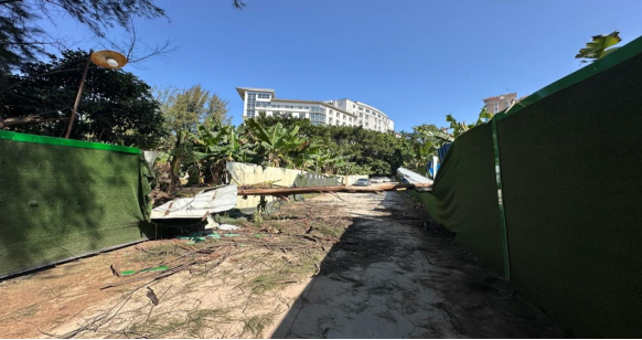 受臺風天氣及持續強降雨影響,蓬江區發展大道與建設路交叉口東南角地塊南側部分圍擋出現傾斜、倒塌及損壞情況。為及時消除隱患、保障周邊行人和車輛通行安全、維護城市環境整潔,我中心迅速響應,對該地塊南側圍擋開展加固整理工作。經過努力,施工方已完成場地內垃圾、瓦礫的清運工作,并對破損圍擋實施了臨時性修復。
