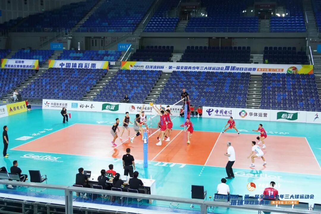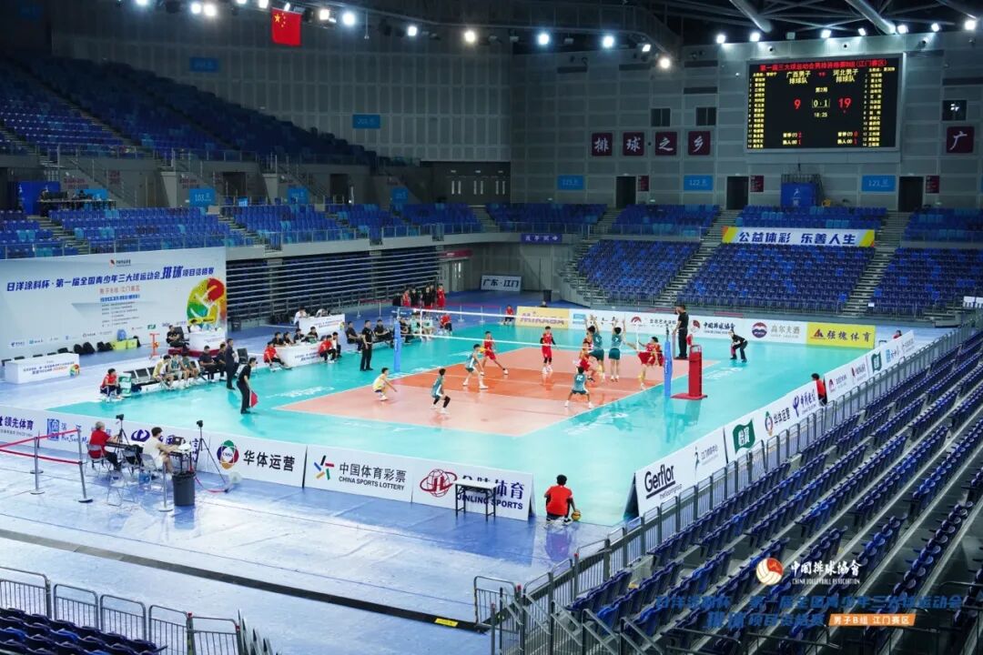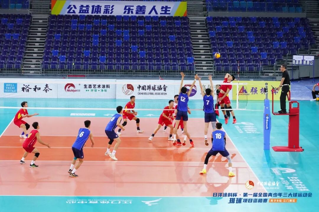 9月23日,日洋涂料杯·第一屆全國青少年三大球運動會排球項目資格賽男子B組(江門賽區)結束13個比賽日(78場次)的激烈爭奪,在江門體育中心體育館順利落下帷幕。該項賽事由國家體育總局排球運動管理中心主辦,江門市文化廣電旅游體育局承辦,江門市蓬江區文化廣電旅游體育局、江門市排球協會協辦,江門濱江華體體育會展中心有限公司運營。