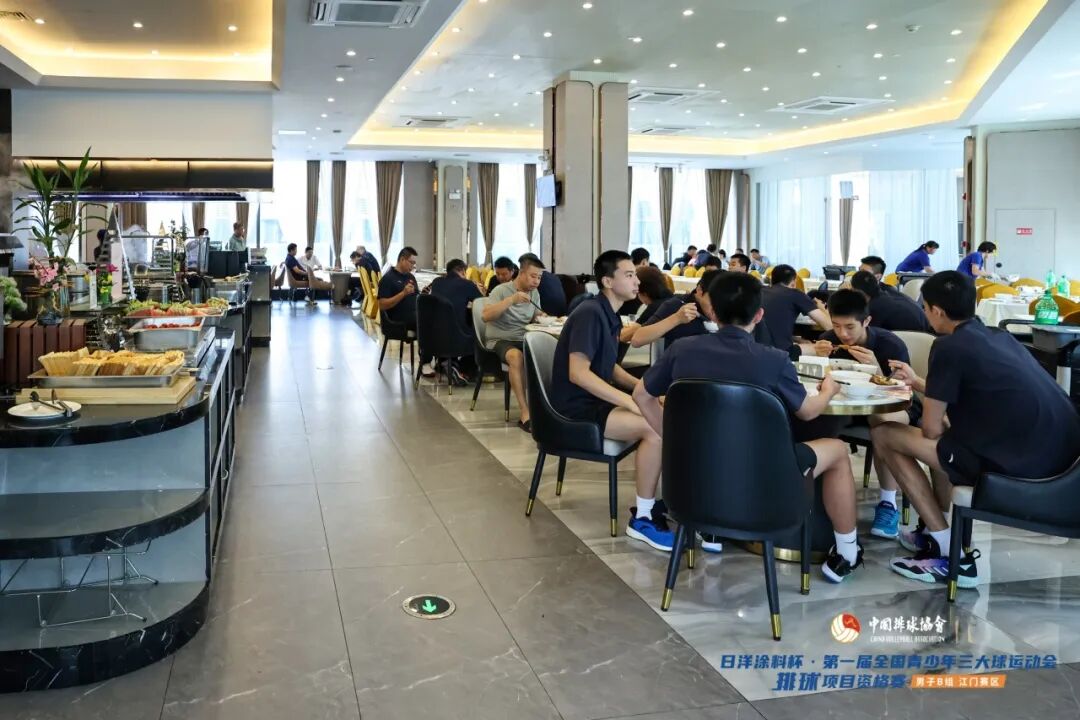 江門賽區賽事器材設備設施等均達到了大賽標準要求,同時配備3片訓練場地和健身房,滿足比賽隊伍的日常訓練需求,讓運動隊保持最好的運動狀態迎接比賽。同時,選定江門華保體育會展酒店作為官方接待酒店,賽場與酒店直線距離100米,運動隊可步行往返。關于食品安全,酒店為運動員提供“安全、綠色、優質、多元”的餐飲服務,盡最大可能滿足用餐需求。