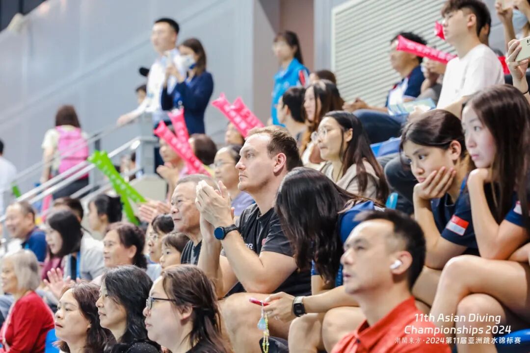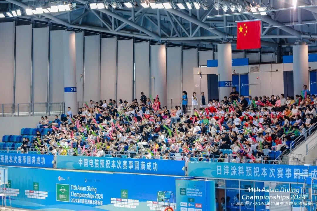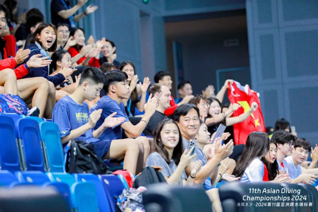中國跳水隊包攬了所有金牌,全場觀眾一同見證這卓越的成績。觀眾們沉浸在比賽的氛圍中,享受體育比賽帶來的激情和快樂。觀眾的歡呼聲和掌聲幾乎從未間斷,他們的熱情和支持成為了本次賽事的一大亮點。