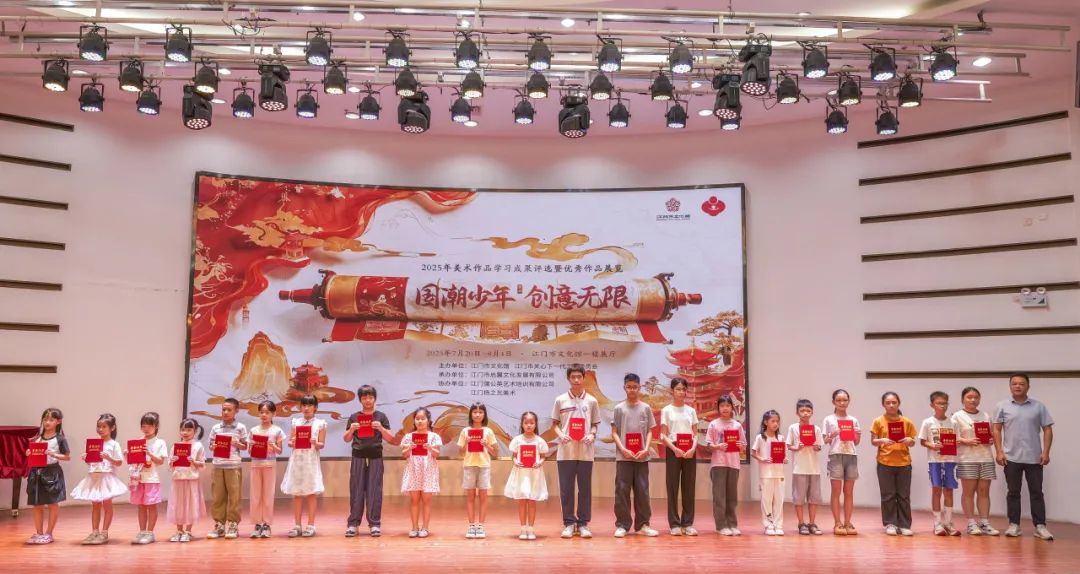 五千年文脈躍然紙上,新時代少年執筆生輝。7月22日,由江門市文化館、江門市關心下一代工作委員會主辦,江門市啟翼文化發展有限公司承辦,江門蒲公英藝術培訓有限公司、江門楊之光美術協辦的2025《國潮少年 創意無限》美術作品學習成果評選頒獎暨優秀作品展覽開幕儀式在江門市文化館舉行。江門市文化館副館長張思斌、廣東省美術家協會會員湯洪貴、江門市民間文藝家副主席陳白山等領導嘉賓以及參與此次活動的師生代表們齊聚一堂、共襄盛舉。