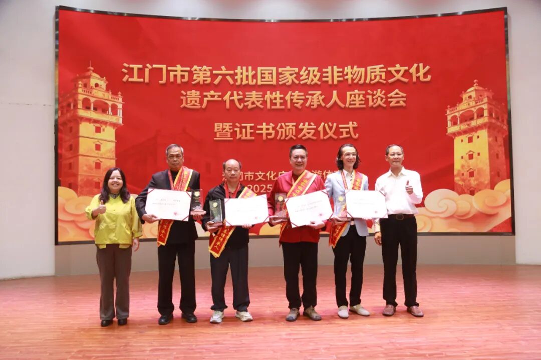 2025年10月27日下午,江門市第六批國家級非物質(zhì)文化遺產(chǎn)代表性傳承人座談會暨證書頒發(fā)儀式在江門市文化館多功能廳舉行。市文化廣電旅游體育局、市非物質(zhì)文化遺產(chǎn)保護(hù)中心、各縣(市、區(qū))文化廣電旅游體育局、各縣(市、區(qū))文化館有關(guān)領(lǐng)導(dǎo),我市4位新入選的第六批國家級非物質(zhì)文化遺產(chǎn)代表性傳承人,以及我市部分省市級非物質(zhì)文化遺產(chǎn)代表性傳承人代表出席了會議。