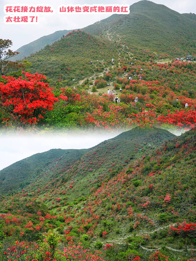 進入4月,江門最盛大的花?!陨焦葹閱挝坏拈_平天露山杜鵑花迎來盛花期。春日賞花,杜鵑是不可或缺的主角。杜鵑花,很多地方都有。然而,想看到可以用“壯觀”一詞來形容,還得是江門開平天露山杜鵑。