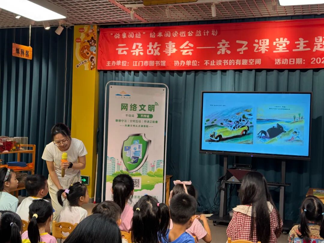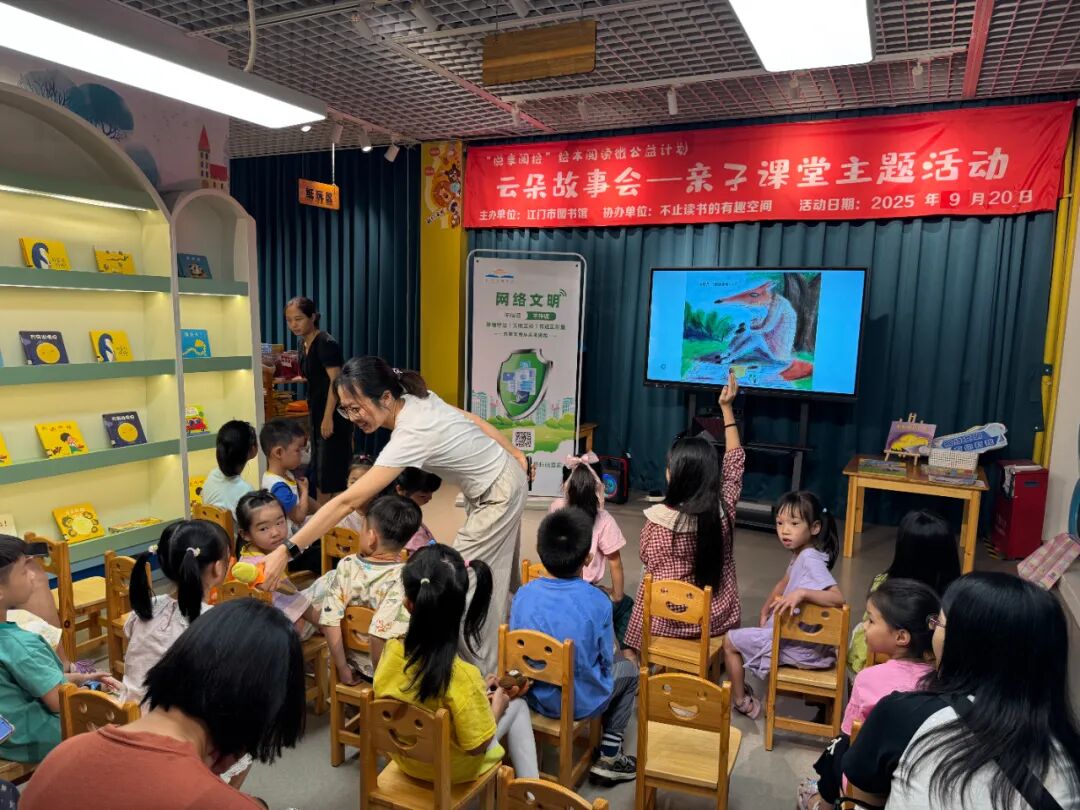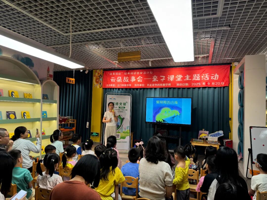 九月,“云朵繪本故事會” 連場開啟,從晨光初照到夕陽斜映,小椅子換了好幾撥雀躍的小身影,繪本里的故事也流轉過不同篇章 —— 有時講開學季的新奇相遇,有時聊網絡世界的奇妙探索。每一場都有軟萌互動、輕聲歡笑,書頁沙沙相互交織,把閱讀歡喜滿滿填進圖書館的秋日時光。