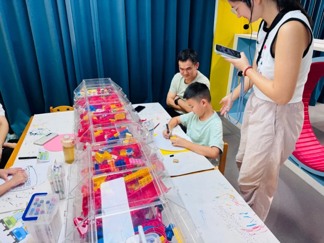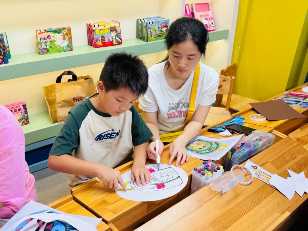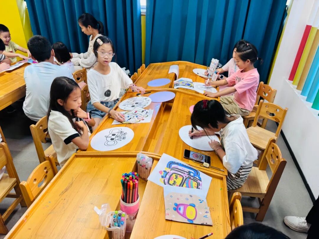 繪本講讀環節結束后,便進入了充滿創意的繪畫環節。本次繪畫主題為 “校車和書包”,工作人員早已為親子家庭準備好彩筆、卡紙等繪畫材料。孩子們迫不及待地拿起畫筆,在家長的陪伴和指導下,開始盡情發揮自己的想象力。