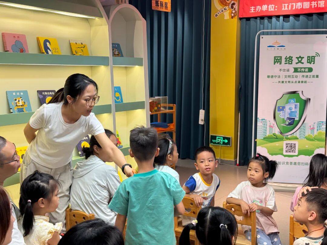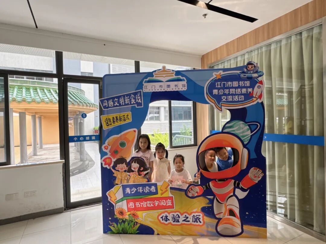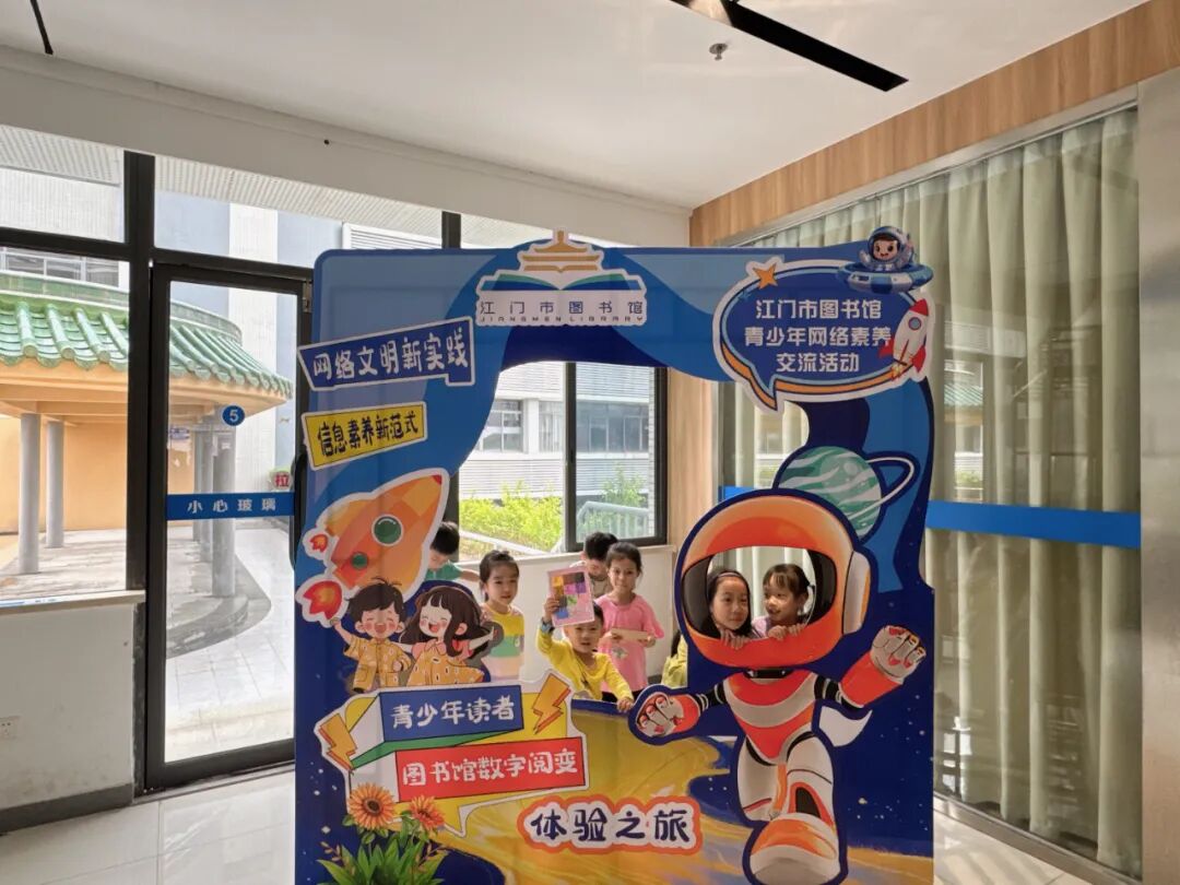 活動最后,親子家庭在講解員的帶領下參觀了江門市圖書館網絡文明素養實踐教育基地。作為廣東省首批網絡文明素養實踐教育基地,江門市圖書館通過圖文展板、互動屏幕等多種形式,系統展示了網絡文明的重要性、網絡謠言識別方法、個人信息保護技巧等內容。