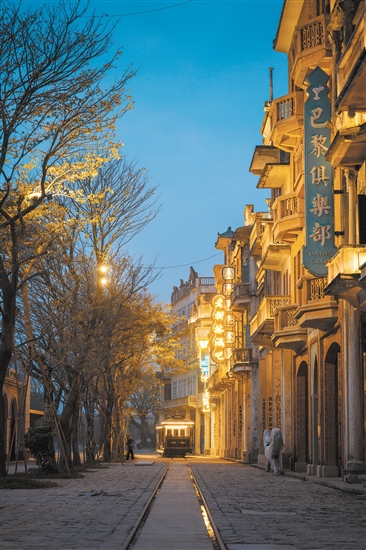 赤坎華僑古鎮的夜晚被點亮,燈光和歷史老建筑的結合讓老建筑“活起來”。